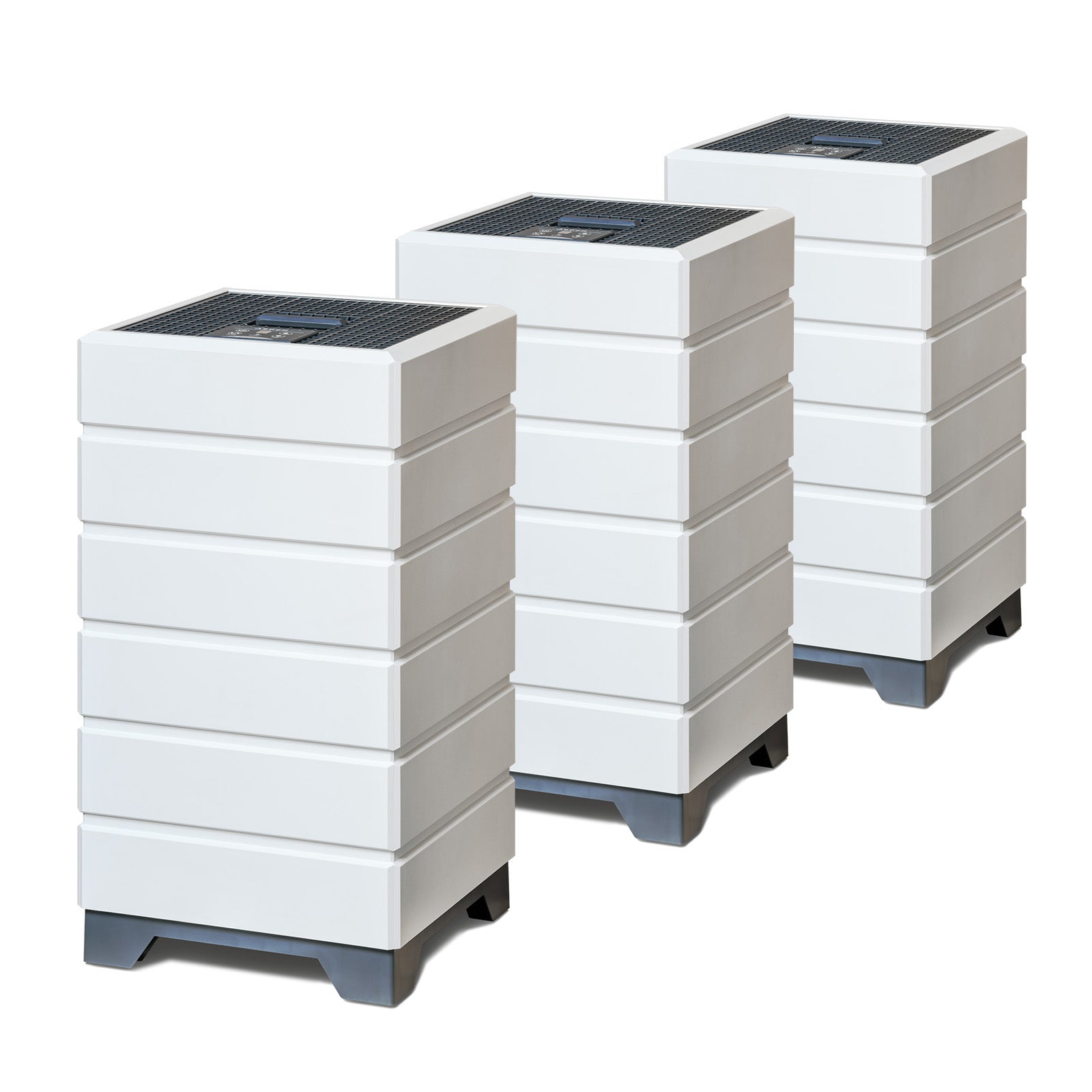 Get a bundle of 3 Aspen high-performance air purifiers to improve the air quality in your whole home. One Aspen air purifier covers about 1,500 square feet (depending on a variety of factors) so 3 is optimal for homes from 2,500 - 4,500 square feet. This is the ideal solution for those who suffer from allergies to dust mites, pollen, pet dander, mold, and any airborne pollutant.