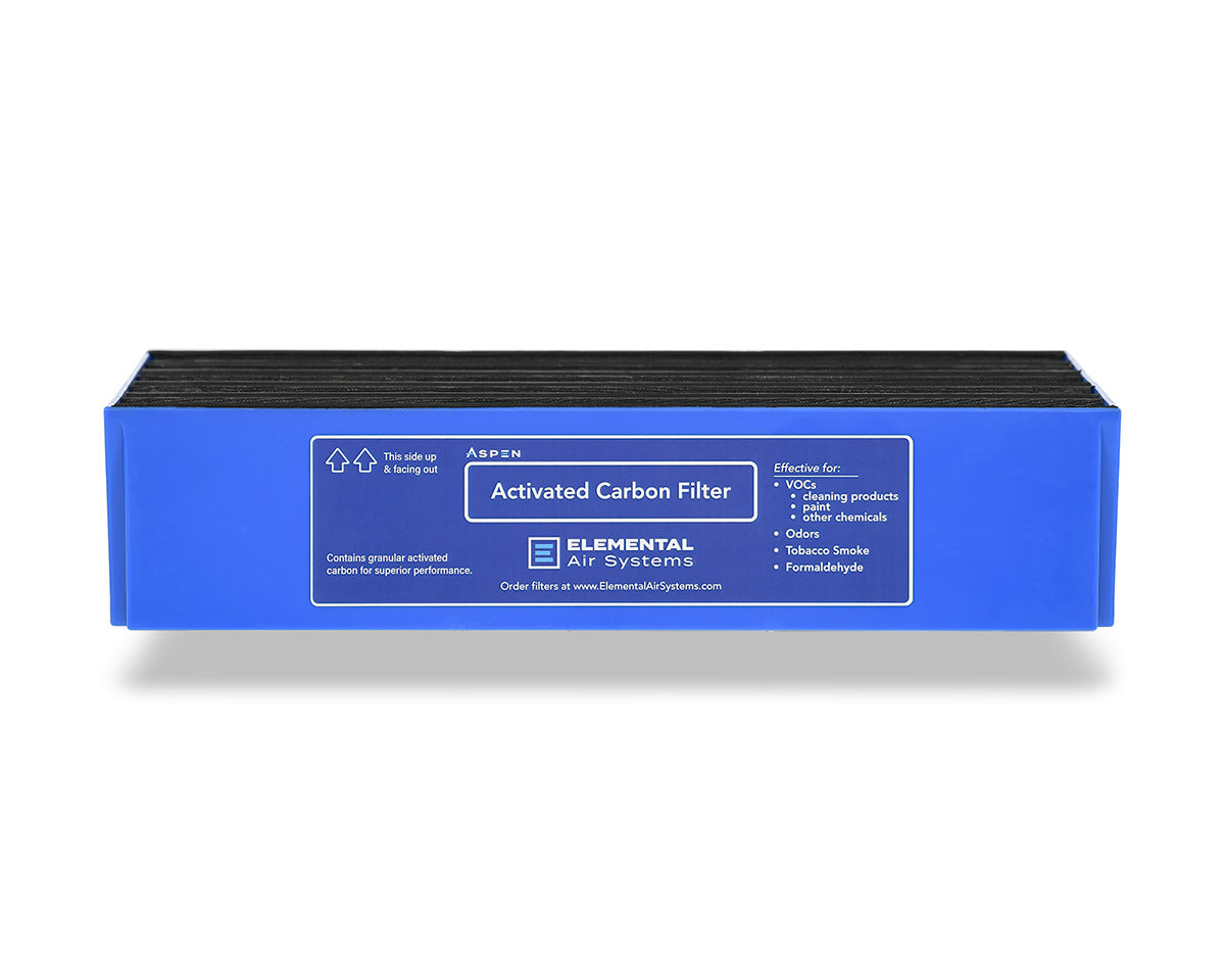 Custom designed for Aspen, this filter contains 3.3lbs of activated carbon with microscopic pores that capture and remove odors, formaldehyde, tobacco smoke, and VOCs from sources like cleaning products, paint, and other chemicals. These extremely tiny harmful particles get trapped in the microscopic pores inside the activated carbon granules.